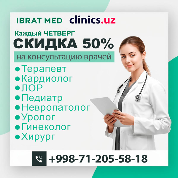 СКИДКА 50% на консультации врачей — только по четвергам в Ibrat Med!