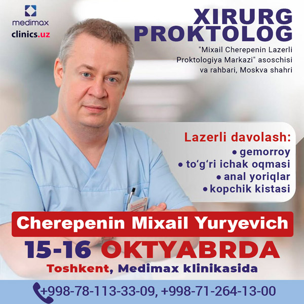2025 yil 15–16 oktyabr kunlari Navoiy shahrida qabul o‘tkazadi va operatsiyalar amalga oshiradi Mixail Yuryevich Cherepenin — jahon miqyosidagi ekspert.