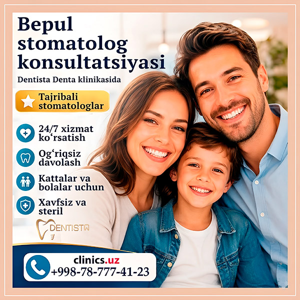 Sog‘lom tabassum to‘g‘ri tashxisdan boshlanadi — va hozir buni Dentista Denta stomatologiya klinikasida mutlaqo bepul amalga oshirish mumkin.