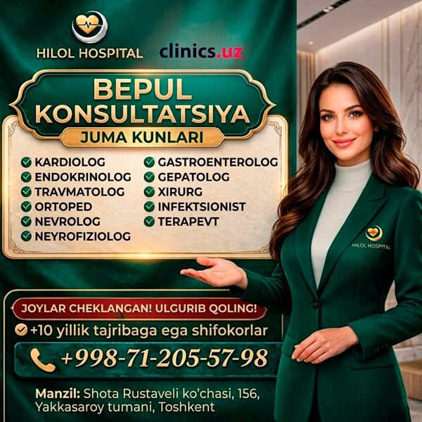 BEPUL malakali shifokorlar konsultatsiyasi — har juma Hilol Hospital klinikasida!